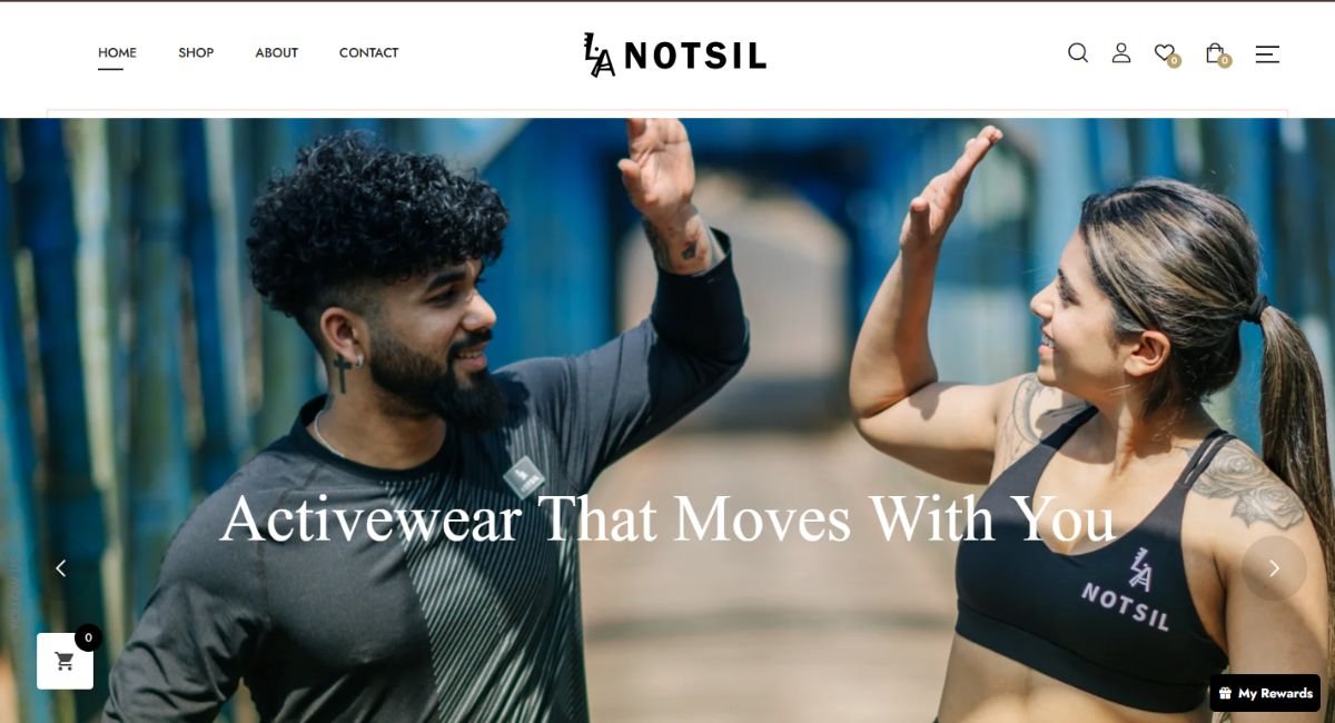 Notsil Activewear, a new and ambitious fitness apparel brand from the UK, needed to launch with a powerful direct-to-consumer (D2C) e-commerce platform. To compete in the global activewear market, they required a website that was not only visually stunning and on-brand but also technically robust enough to handle international currencies, payments, and shipping seamlessly from day one.
